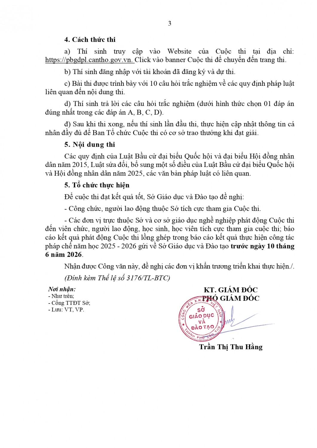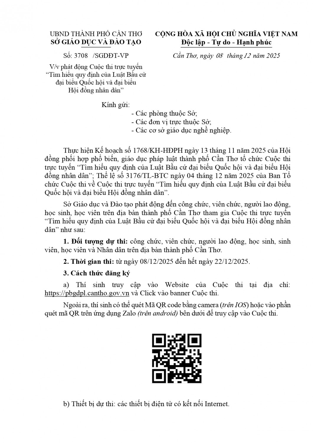 Đoàn Trung tâm GDNN-GDTX thị xã Vĩnh Châu triển khai Công văn số 3708/SGDĐT-VP ngày 08/12/2025 của Sở Giáo dục và Đào tạo thành phố Cần Thơ về việc phát động Cuộc thi trực tuyến "Tìm hiểu quy định của Luật Bầu cử đại biểu Quốc hội và đại biểu Hội đồng nhân dân".
