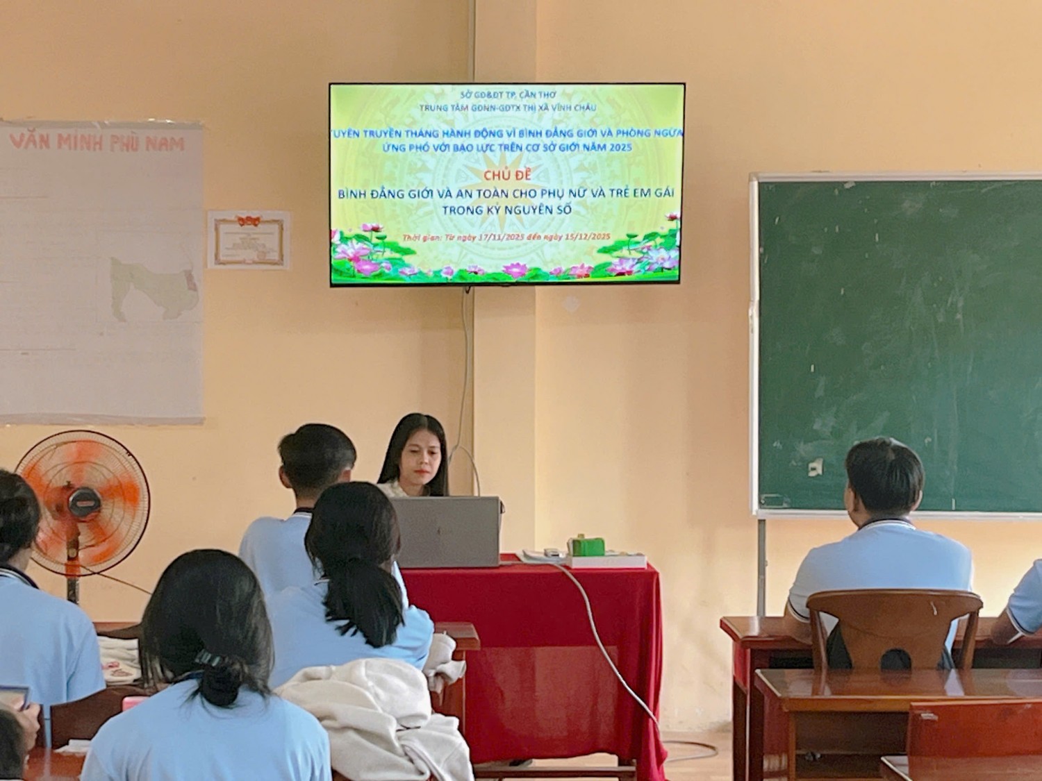 Hoạt động tuyên truyền được triển khai nghiêm túc, đồng bộ, đảm bảo mọi giáo viên và học viên đều tiếp cận đầy đủ thông tin. Thông qua Tháng hành động, Trung tâm GDNN-GDTX thị xã Vĩnh Châu mong muốn góp phần xây dựng môi trường giáo dục an toàn - thân thiện - không bạo lực, đồng thời nâng cao ý thức trách nhiệm của học viên trong việc tôn trọng bình đẳng giới và tích cực lên tiếng trước các hành vi vi phạm.