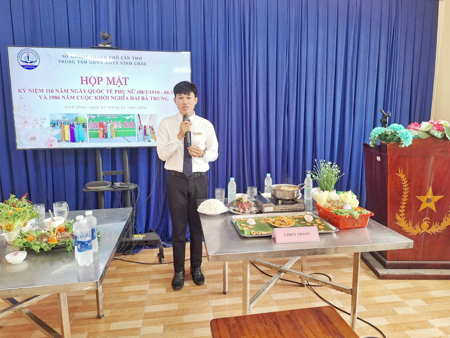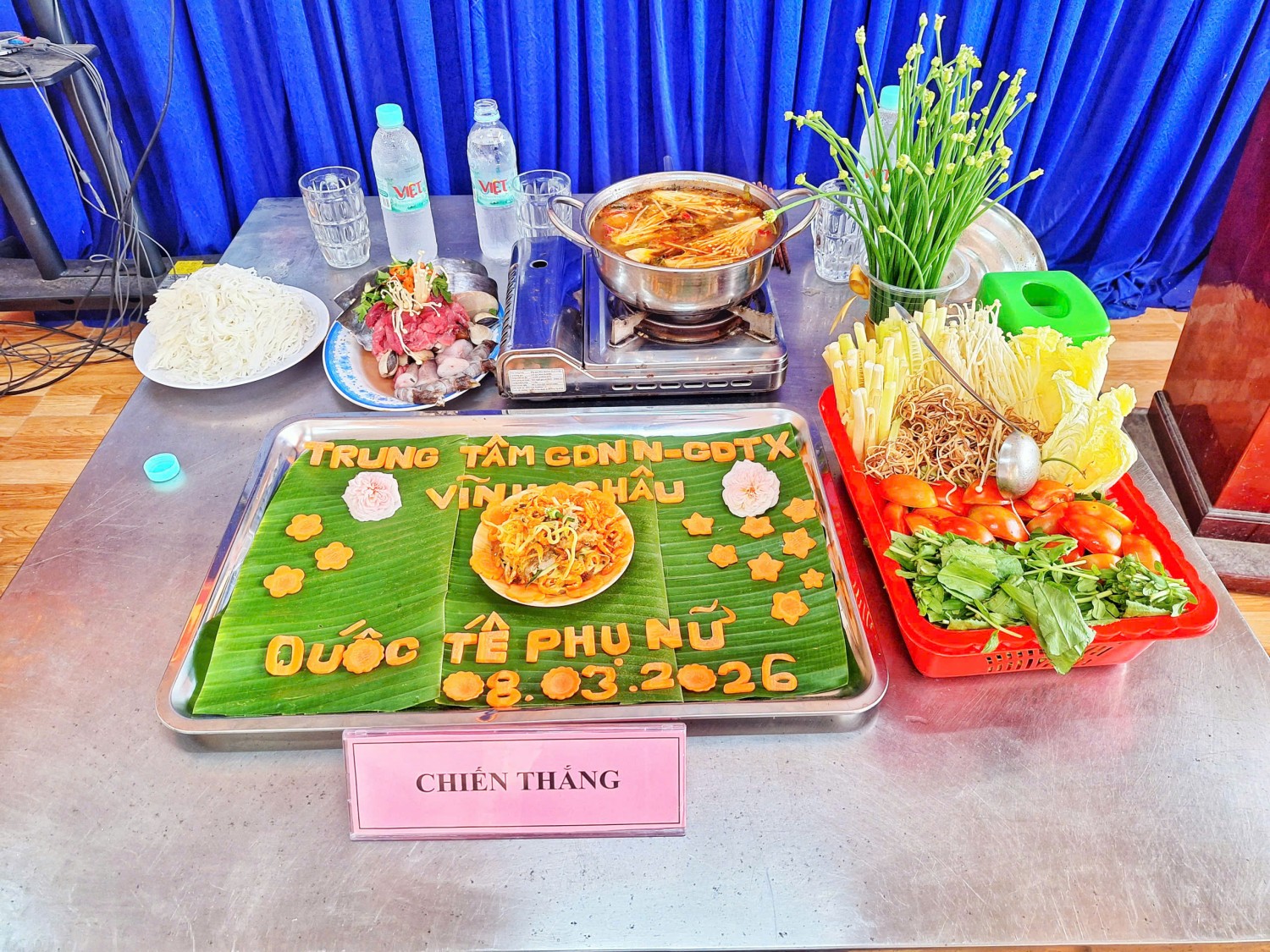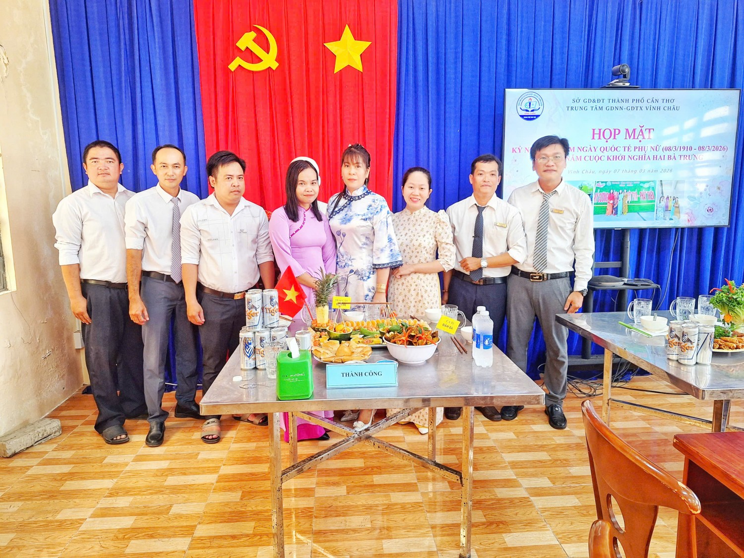 Hòa trong không khí hân hoan kỷ niệm 116 năm Ngày Quốc tế Phụ nữ (08/3/1910 - 08/3/2026) và 1986 năm cuộc khởi nghĩa Hai Bà Trưng, sáng ngày 07/3/2026, Trung tâm GDNN - GDTX Vĩnh Châu đã tổ chức các hoạt động ý nghĩa gồm Hội thi nấu ăn và buổi họp mặt kỷ niệm Ngày Quốc tế Phụ nữ 8/3.