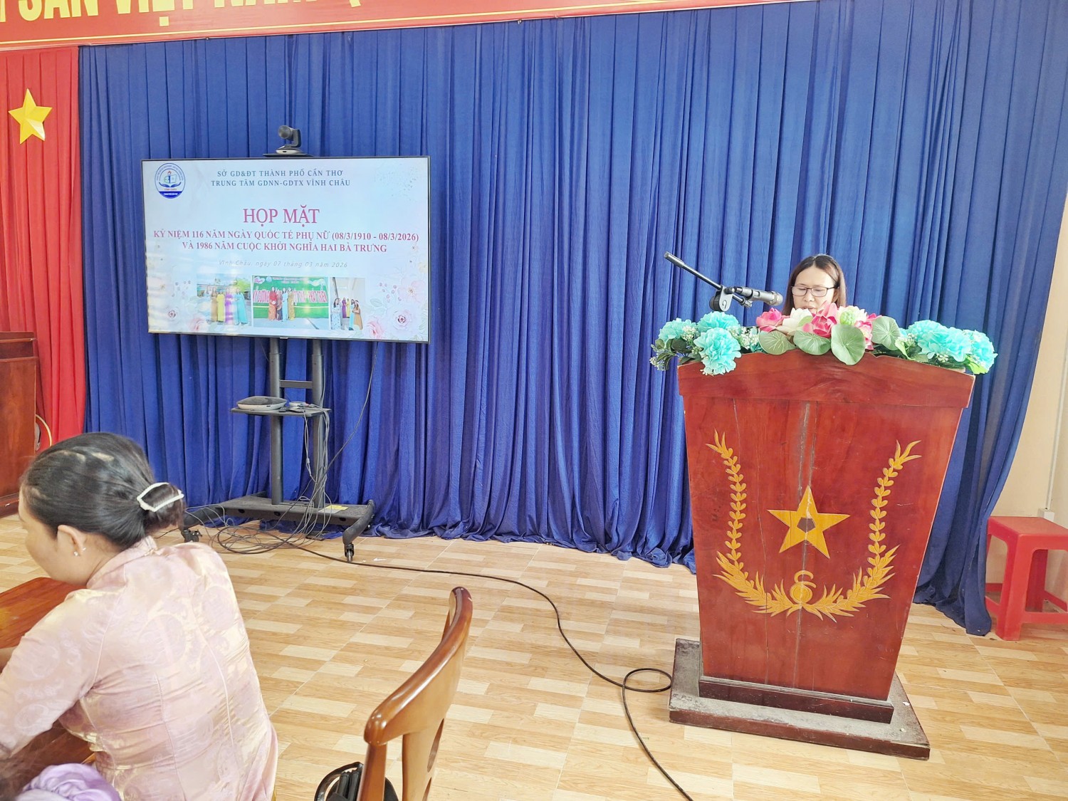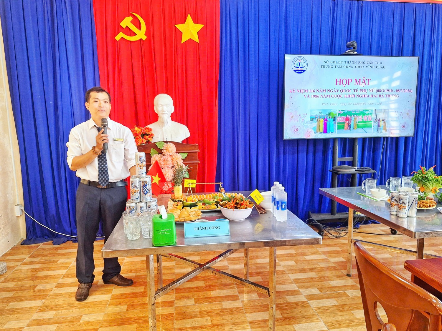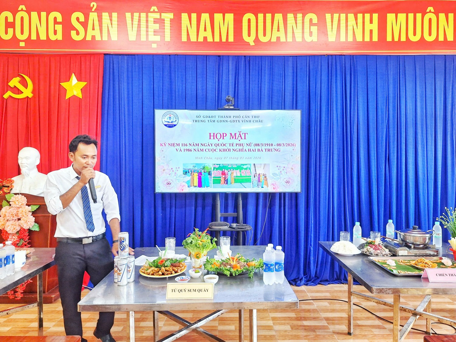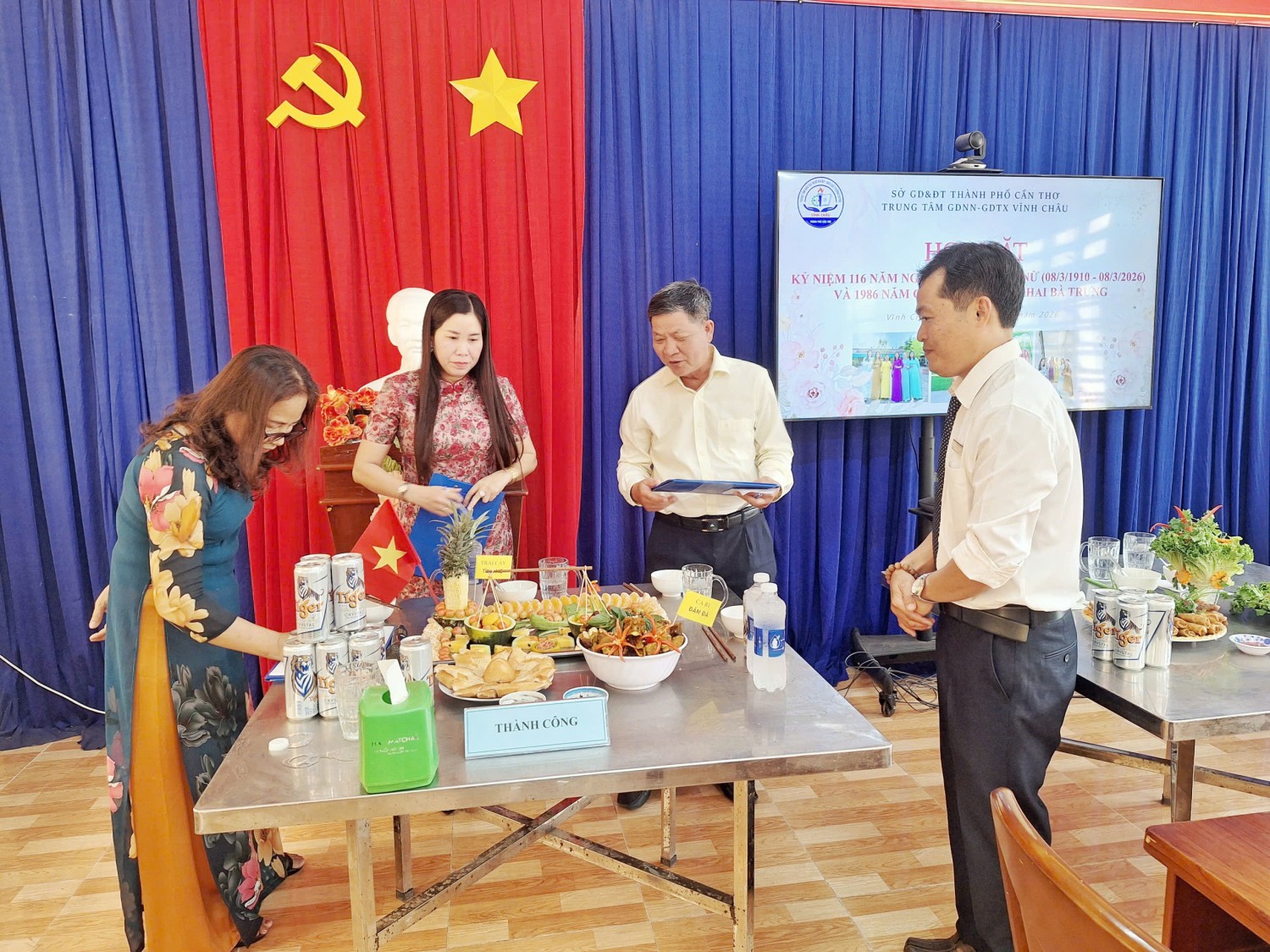 Hòa trong không khí hân hoan kỷ niệm 116 năm Ngày Quốc tế Phụ nữ (08/3/1910 - 08/3/2026) và 1986 năm cuộc khởi nghĩa Hai Bà Trưng, sáng ngày 07/3/2026, Trung tâm GDNN - GDTX Vĩnh Châu đã tổ chức các hoạt động ý nghĩa gồm Hội thi nấu ăn và buổi họp mặt kỷ niệm Ngày Quốc tế Phụ nữ 8/3.