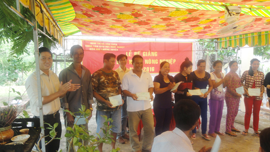 Cùng đến dự lễ bế giảng về phía trung tâm có ông: Lý Văn Luận - phó Giám đốc trung tâm; Đại diện Đảng ủy - UBND ấp/xã có ông: Lê Hoàng Giang - Khuyến nông xã Vĩnh tân và cùng có mặt 18 em học viên, với sự tham dự đài Truyền thanh thị xã Vĩnh châu đến dự và đưa tin.