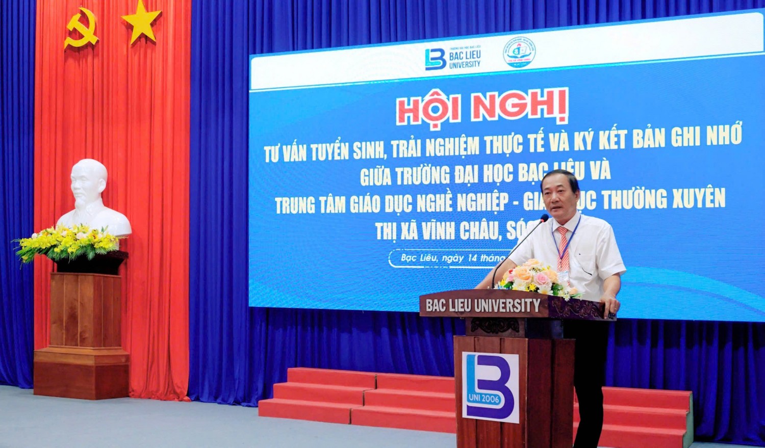 Phát biểu tại Hội nghị, TS Tiền Hải Lý - Phó Hiệu trưởng Trường Đại học Bạc Liêu đã giới thiệu tổng quan về nhà trường. Đồng thời, ông nhấn mạnh rằng sự hợp tác này không chỉ góp phần nâng cao chất lượng đào tạo mà còn tạo nền tảng vững chắc cho mối quan hệ hợp tác bền vững giữa hai đơn vị.