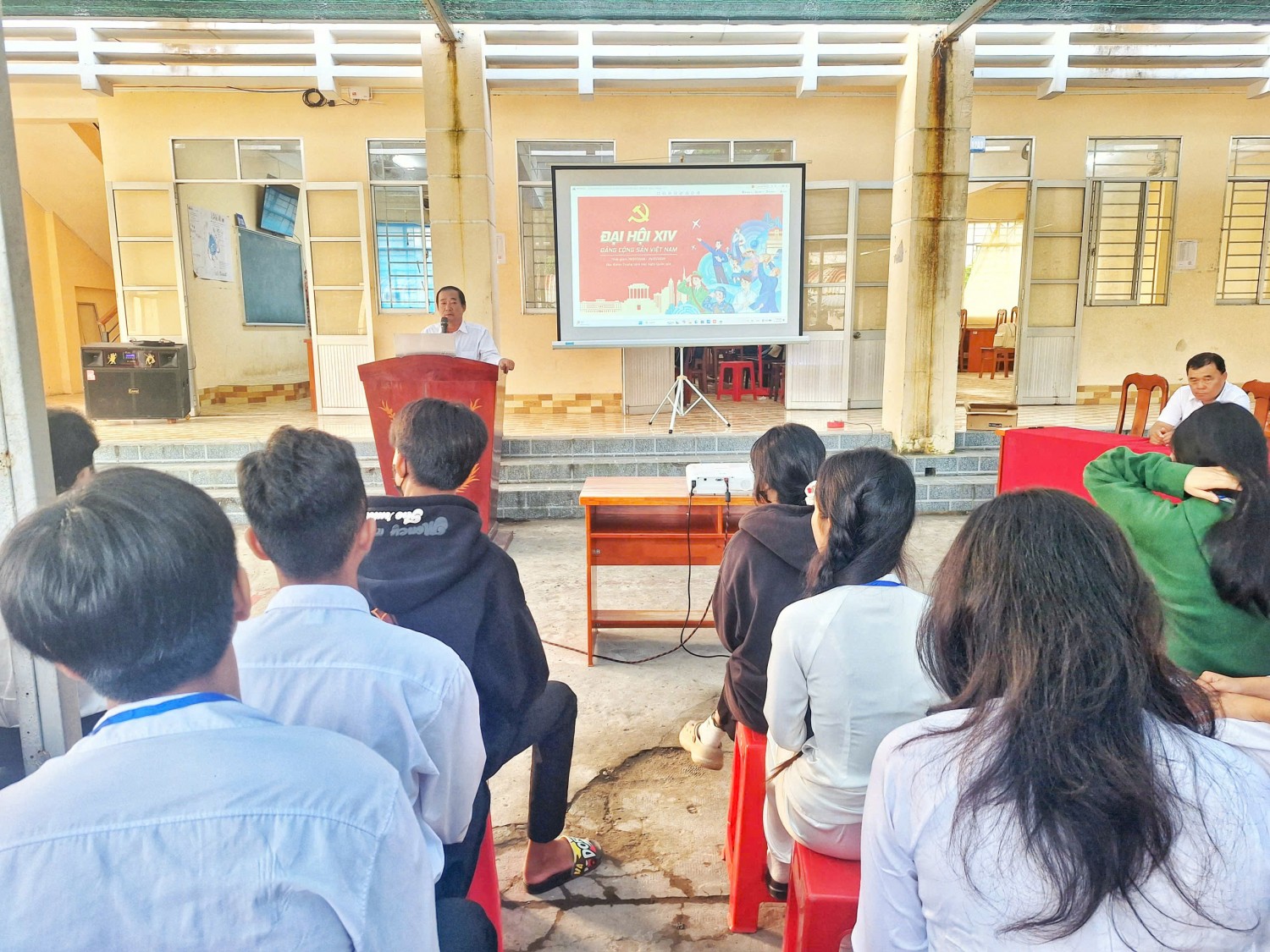 Trước buổi tuyên truyền, thầy Trần Nhuận Thanh Liêm - Giám đốc Trung tâm đã thông tin đến viên chức, giáo viên, nhân viên và các em học viên về tình hình hoạt động của Trung tâm sau sáp nhập, liên quan đến tổ chức bộ máy, công tác nhân sự và việc ổn định hoạt động dạy - học. Đồng thời, thầy cũng thông báo để học viên nắm về việc Đại hội đại biểu toàn quốc lần thứ XIV của Đảng Cộng sản Việt Nam diễn ra từ ngày 19/01/2025 đến 25/01/2025.