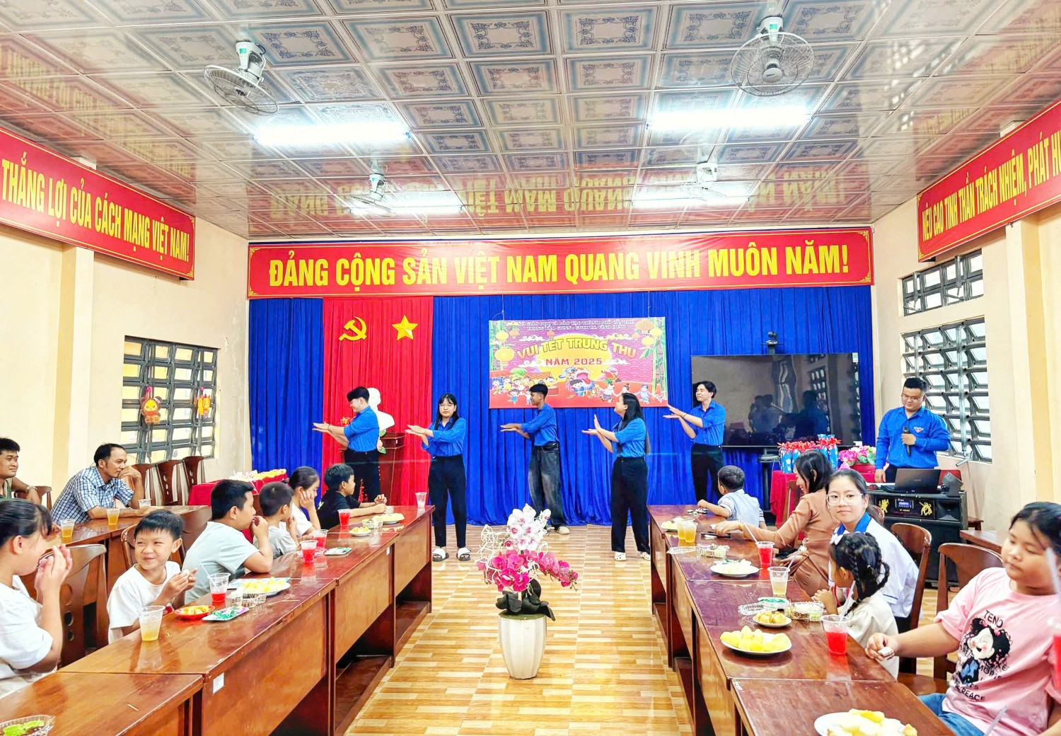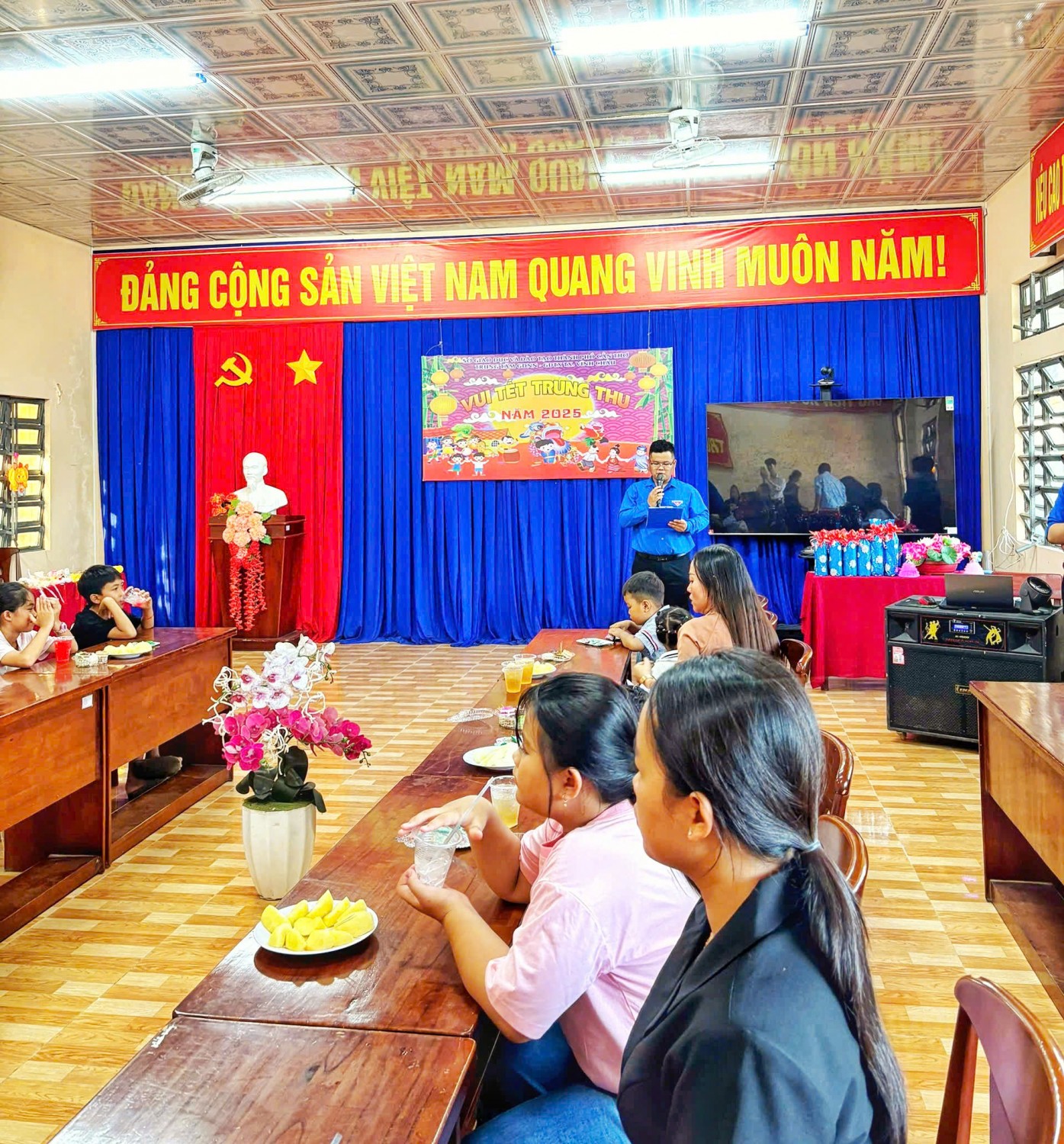 Mở đầu chương trình là những tiết mục văn nghệ rộn ràng, mang đậm sắc màu đêm rằm tháng Tám. Ngay sau đó, các em thiếu nhi đã được lắng nghe thư chúc Tết Trung thu của Cấp ủy Chi bộ do cô Thạch Thùy Xuân Thảo - Phó Bí thư Chi bộ, thay mặt gửi gắm, với những lời chúc ấm áp và tràn đầy ý nghĩa.