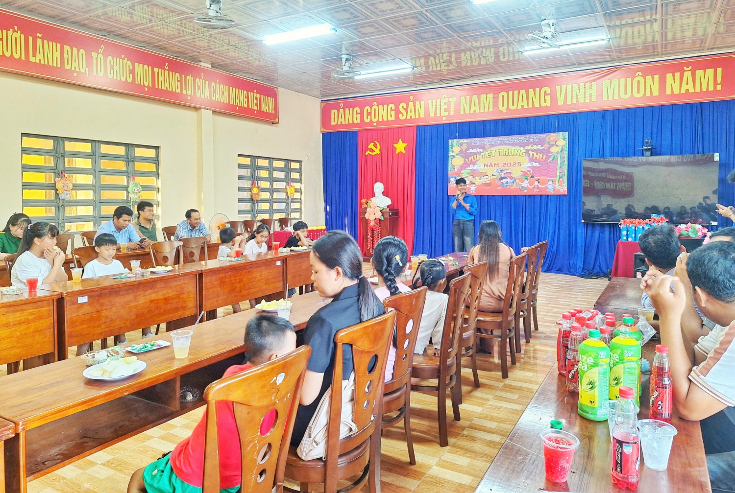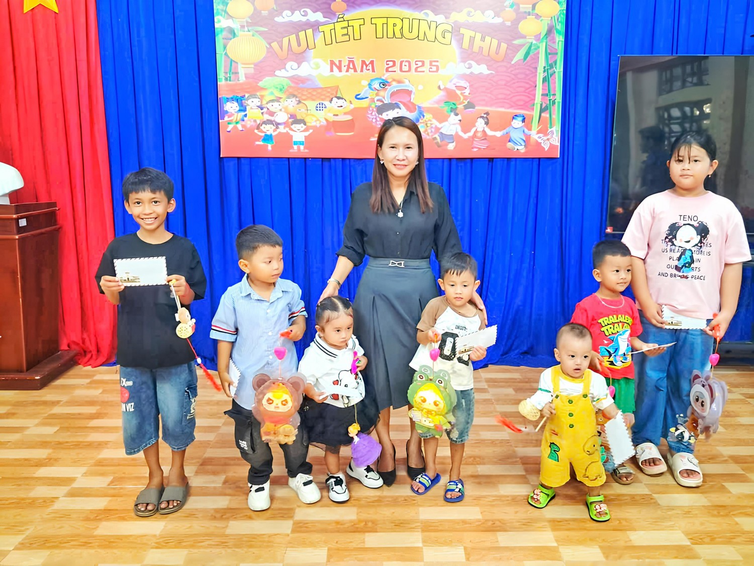 Không khí đêm hội càng thêm sôi động với các trò chơi dân gian, phần đố vui có thưởng và các tiết mục múa hát tập thể. Đặc biệt, các em nhỏ vô cùng háo hức khi nhận được những phần quà Trung thu ý nghĩa từ Ban Tổ chức.